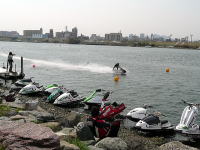 相模川のジェットフィールド湘南で55HEAVEN加藤店長の呼びかけでスラロームタイムアタック大会が行われました。