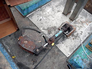 ![]() K氏はラダーの油圧システム取り付け中です。 |